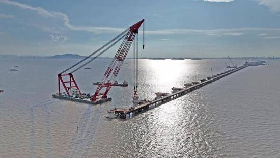 杭州灣跨海鐵路大橋建設(shè)現(xiàn)場