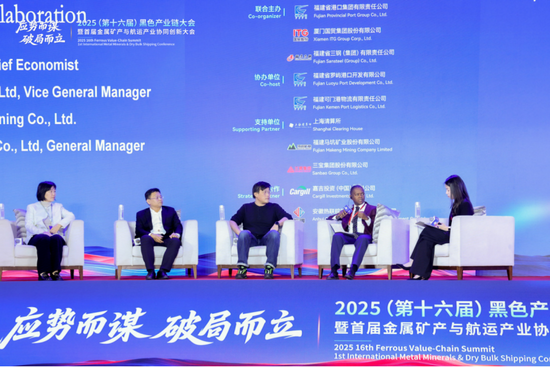 接下來進(jìn)入大會的圓桌討論環(huán)節(jié),發(fā)言嘉賓有南非礦產(chǎn)委員會首席經(jīng)濟(jì)師 Bongani Motsa、卓嶼供應(yīng)鏈礦業(yè)副總經(jīng)理趙軼山、山東魯南礦業(yè)鞠會霞博士、五礦唐山曹妃甸礦石控股有限公司總經(jīng)理王寧就混選產(chǎn)品發(fā)展與產(chǎn)業(yè)協(xié)同為主題進(jìn)行了一場思想的探討。