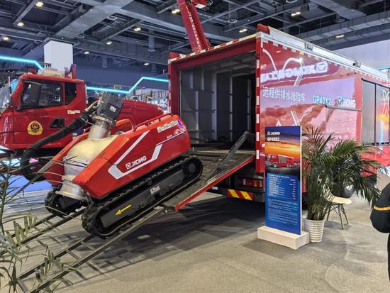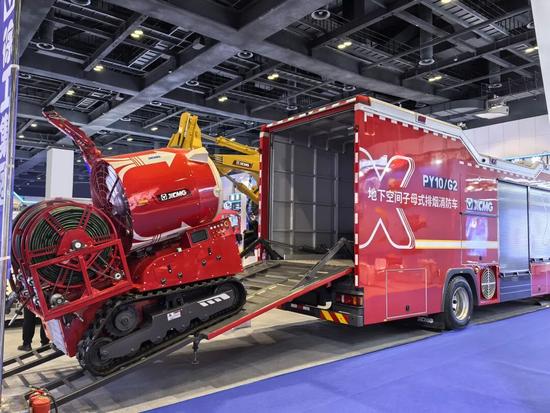 展會(huì)現(xiàn)場,徐工展區(qū)人氣高漲,多功能應(yīng)急救援車、行業(yè)首款子母式正負(fù)壓排煙車、“鋼鐵螳螂”步履式挖掘機(jī)等高精尖裝備吸引海內(nèi)外觀眾駐足打卡。