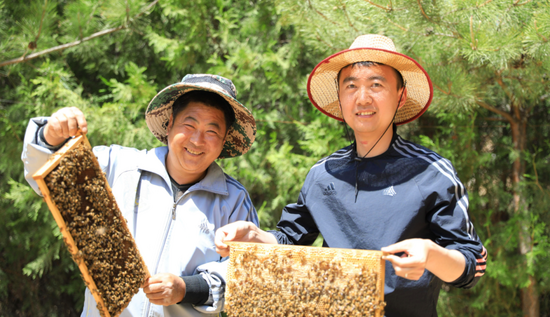 神東煤炭集團(tuán)駐村干部在米脂縣帶動(dòng)村民養(yǎng)蜂致富。