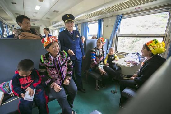 2023年1月,成昆鐵路公益性“慢火車”完成改造升級,推出“彝鄉(xiāng)情”服務(wù)品牌,提升車容環(huán)境,融入彝族文化元素,打造了“學(xué)習(xí)車廂”“健康驛站車廂”等特色車廂,服務(wù)沿線鄉(xiāng)村振興。