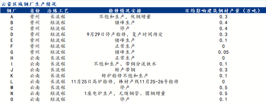 貴州區(qū)域高爐廠受環(huán)保檢查影響,高爐維持不飽和生產(chǎn),日均影響建筑鋼材產(chǎn)量0.3萬噸;電爐鋼廠多維持錯峰生產(chǎn),日生產(chǎn)時長8-10小時,部分電爐鋼廠停產(chǎn)檢修尚未復(fù)產(chǎn),累計日均產(chǎn)量產(chǎn)量1.25萬噸。云南區(qū)域鋼廠虧損較大,國內(nèi)礦使用增多,整體鐵水有所下降,同時轉(zhuǎn)產(chǎn)帶鋼、型材、鋼管等品種增多,部分鋼廠開啟檢修,日均影響產(chǎn)量達到1.6萬噸。整體開工率僅66%,環(huán)比降8.85%,云南三家鋼廠已明確12月轉(zhuǎn)產(chǎn)帶鋼、型材。