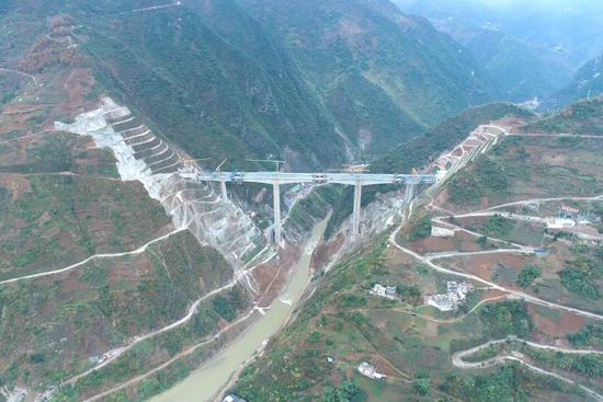 10月1日,渝昆高鐵控制性工程小龍潭特大橋合龍