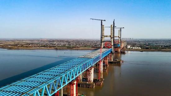 創造新的建橋紀錄!崇啟公鐵長江大橋鋼梁頂推圓滿完成