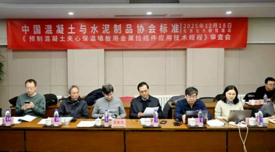 20251218日,中國混凝土與水泥制品協會在北京組織召開了《預制混凝土夾心保溫外墻板用金屬連接件應用技術規程》協會標準審查會召開。來自行業協會、科研院所、高校、檢測評定機構、生產企業和用戶代表22人參加了會議,其中審查專家10人。會議審查了由中國混凝土與水泥制品協會預制混凝土構件分會牽頭、北京預制建筑工程研究院有限公司等單位負責制定的《預制混凝土夾心保溫外墻板用金屬連接件應用技術規程》協會標準送審稿。