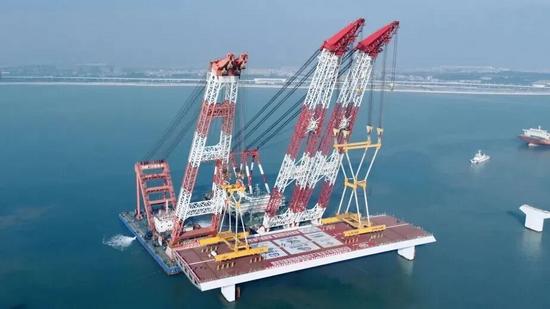 4586噸!廈金大橋廈門段項目海上首榀鋼箱梁吊裝完成